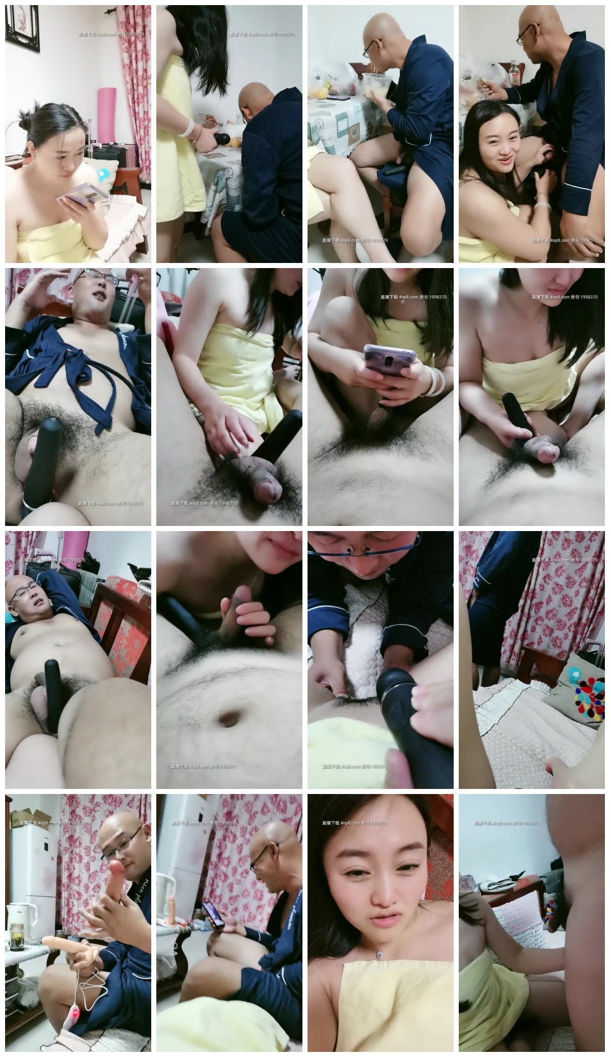 水浙浙真空遛弯 光头眼镜大叔吃饭 媳妇用大黑牛玩小弟弟 口爆