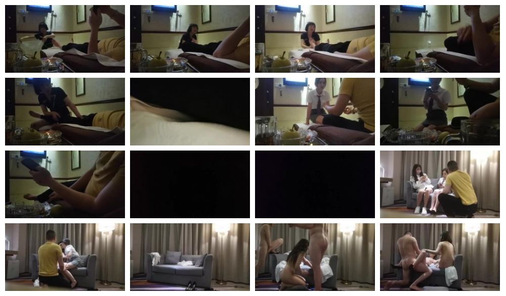 蜡笔老公专攻足浴按摩勾搭技师,带两个妹子回房间双飞,跪着口交前后夹击,沙发翘起屁股一个个后入猛操