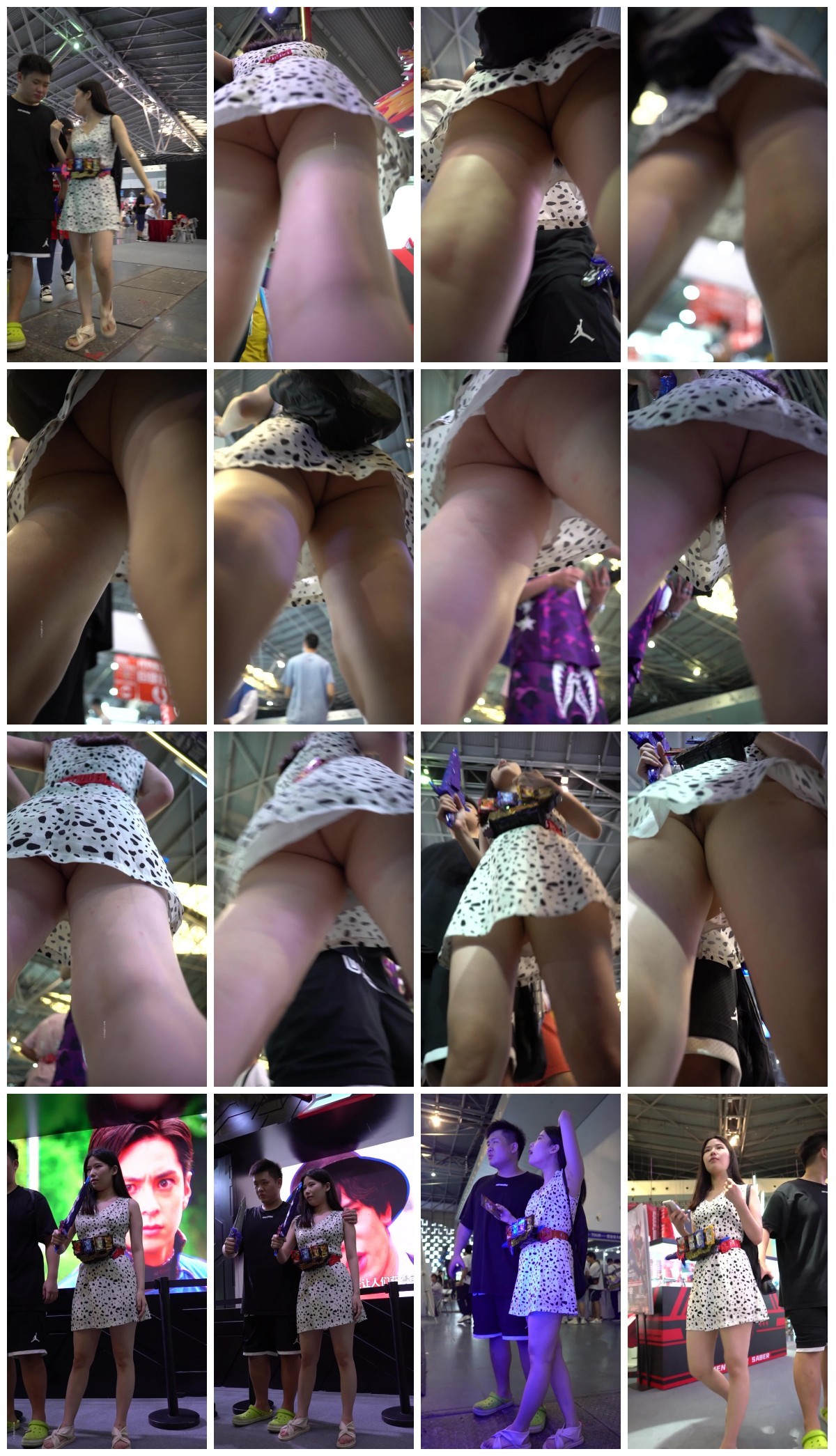 主题展销会跟拍,极限抄底黑点白色连衣裙美女小姐姐,真空出门还是一线天,男友陪伴