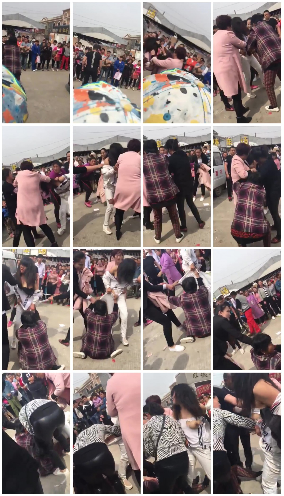 熟女大婶带亲友团故意在人多的菜市场殴打小三 边打边骂无力反抗 衣服撕烂扒裤子露出大奶露下体